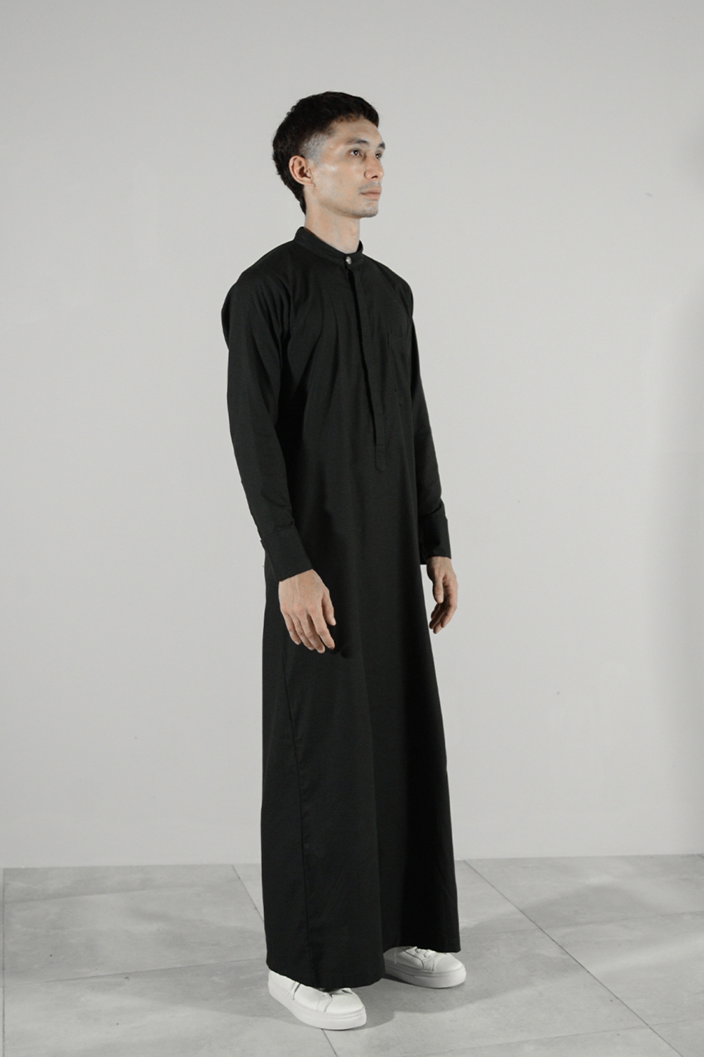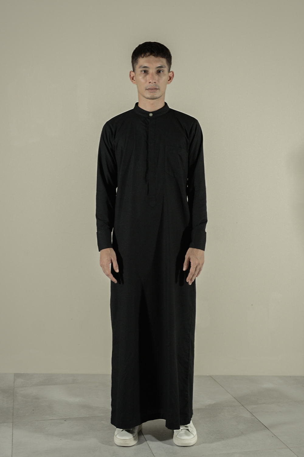 Styling Designed to cater to everyone, our black thobe (jubah) is easily styled by anyone seeking a blend of comfort and elegance. Its minimalist design makes it suitable for various occasions, from casual outings to formal gatherings.